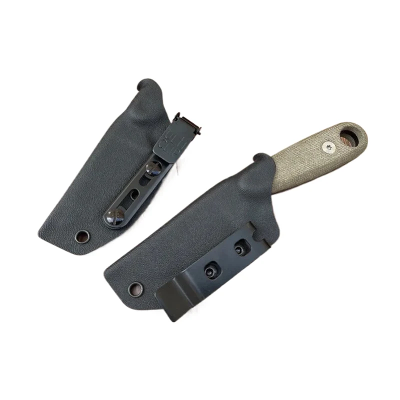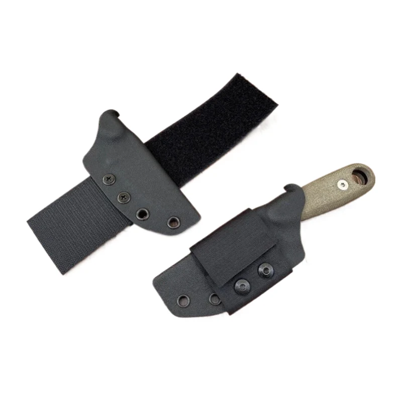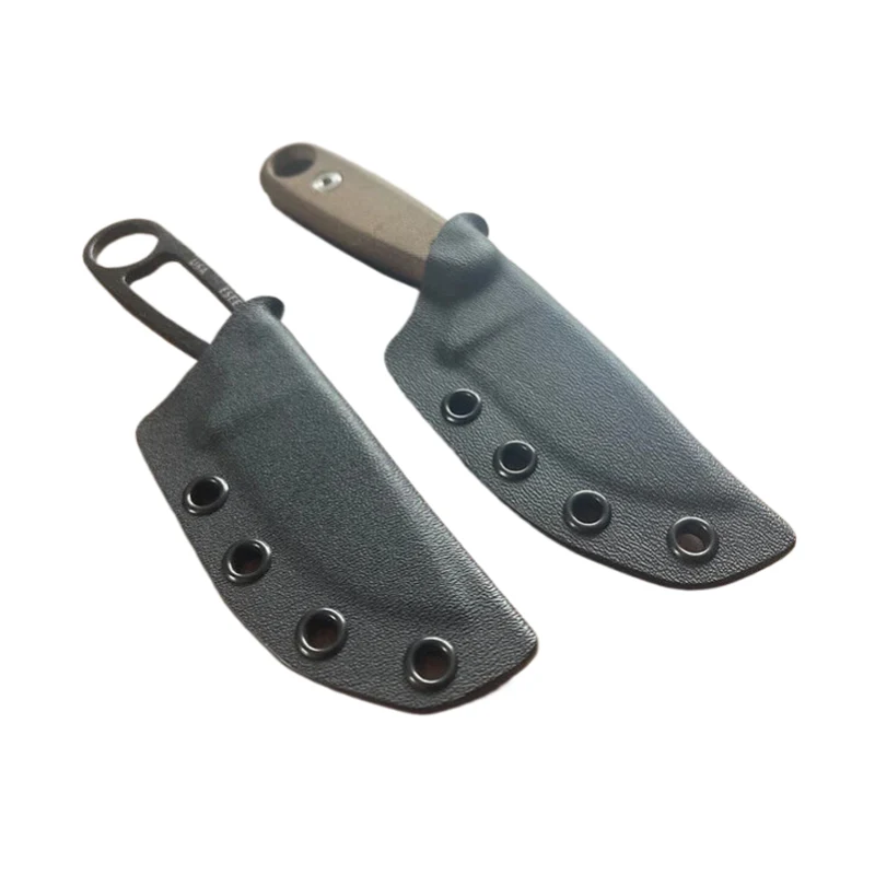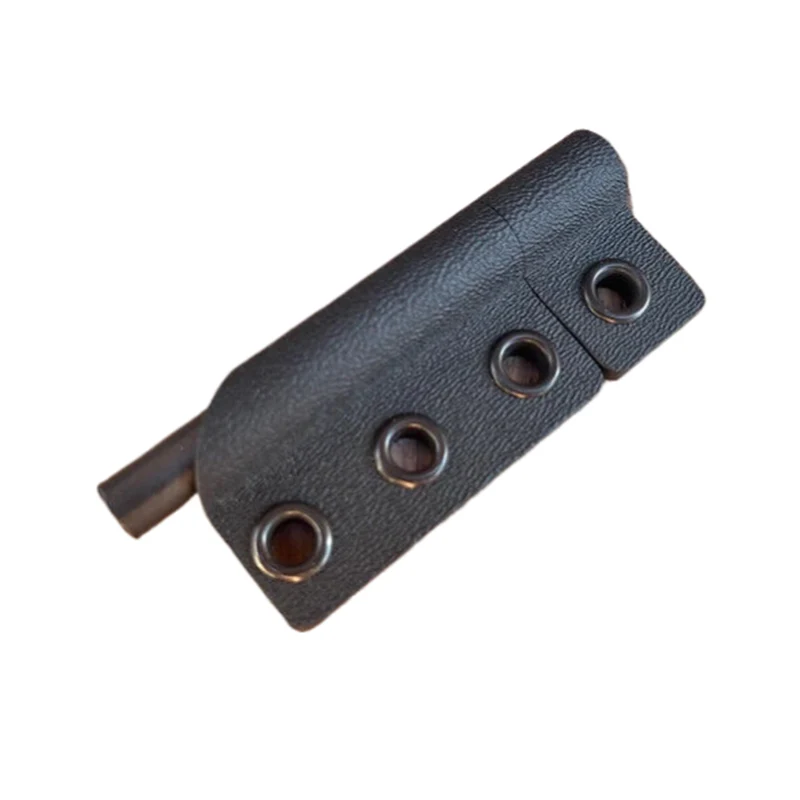 Kydex चाकू म्यान एका बाजूला eyelets आणि दोन्ही बाजूला eyelets मध्ये उपलब्ध आहे. तुम्ही क्लिप ऑर्डर केल्यास, तुम्हाला कोणती हवी आहे ते निर्दिष्ट करा.